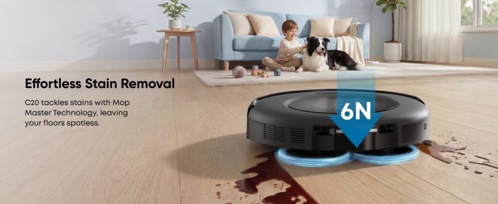Wrong fit also starts when you expect stain removal to behave like a true high-pressure roller-mop flagship. The C20’s mopping system is active, not passive, and that is important. But RTINGS still says its mops are not especially effective at cleaning stains in tougher scenarios, while Vacuum Wars describes the mopping as excellent for the price rather than category-dominating in absolute terms.