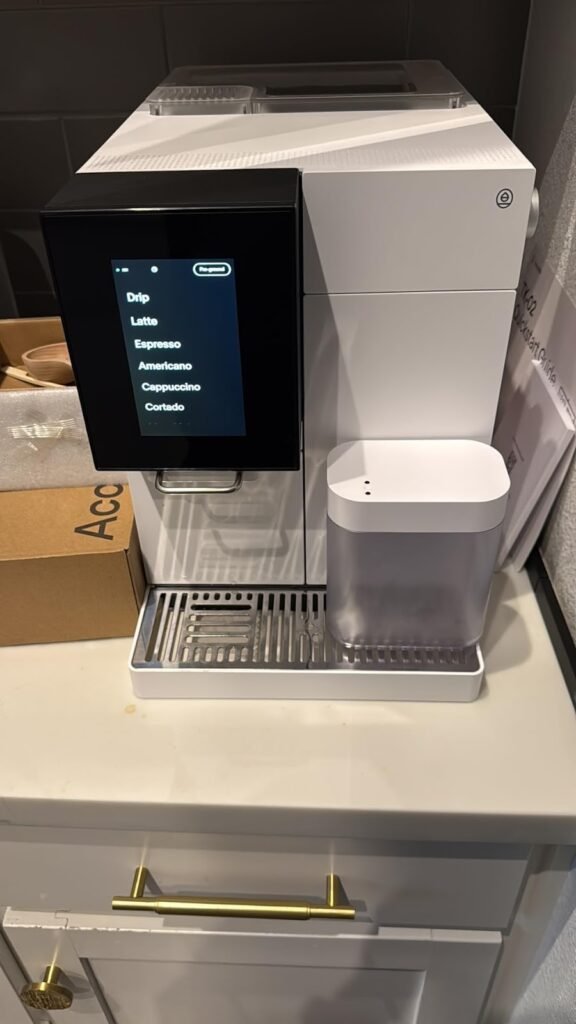 You are especially inside it if your house behaves like a mini café without the romance—one person wants espresso, another wants a milk drink, someone else wants drip coffee, and nobody wants a counter crowded with three half-solutions. The machine’s official feature set is almost built around this pattern: custom drinks tied to your account, wake scheduling, OTA updates, whole bean or pre-ground input, and a drip-carafe expansion for multi-mug use. Review coverage backs that up: the strongest praise is not “best espresso ever,” but “this fits into life cleanly.”